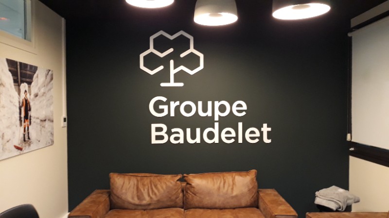 - Logo découpé sur mur intérieur
