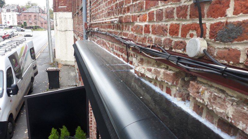 - Jonction entre le auvent et le mur réalisé en aluminium et et joint d'étanchéité